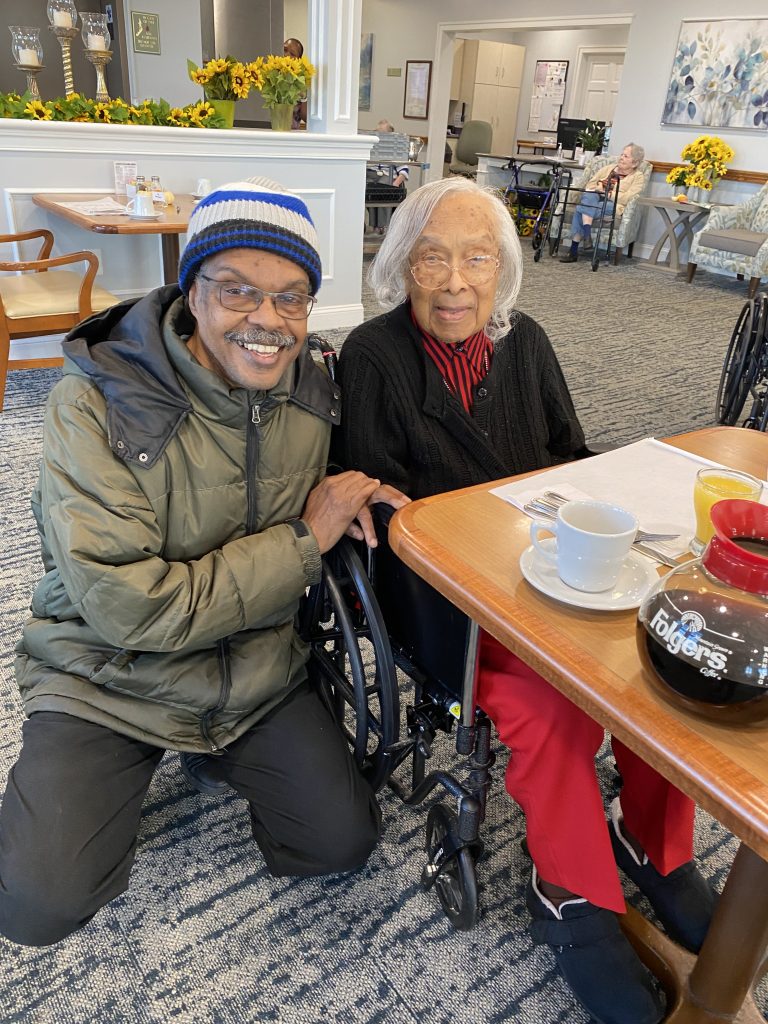 I GET A LOT OF CALLS ABOUT MISS ALMA IRVINE! I THINK EVERYONE HAD HER AS THEIR FIFTH GRADE TEACHER…. I CALL, AND GO BY AND SEE HER EVERY NOW AND THEN. HERE IS A SHOT OF US HAVING DINNER AT THE SUMMIT, OCTOBER 2025, …..HER HOME FOR NOW: