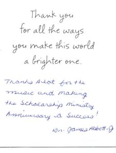 HERE IS A RECENT ONE FROM MY DEAR FRIEND AND CLASSMATE REV. DR. JAMES ABBOTT! WE WERE IN THE MIDDLE OF PLANNING ANOTHER EVENT WHEN HE SUDDENLY PASSED AWAY!